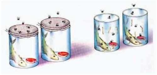 2. O médico italiano Francesco Redi (1626-1697) decidiu investigar a origem dos vermes encontrados em cadáveres em decomposição. A ideia na época era a de que esses vermes surgiam da transformação da própria matéria em decomposição. Mas Redi não acreditava nisso; formulou e realizou experimentos muito simples como o que está abaixo, na imagem. Observe-o: